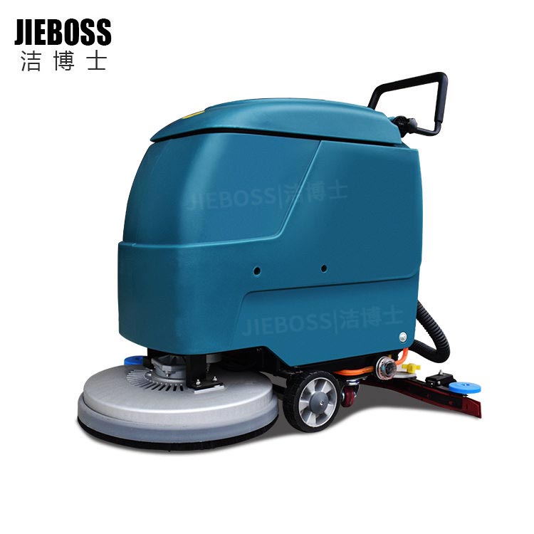 >2、550型洗地機集洗刷、吸干于一體。前置毛刷或百潔墊,清洗地面的油漬、污漬等;后置JIEBOSS獨特設計的吸水扒,有效吸干污水,設備經(jīng)過(guò)的地面,達到干透的效果。